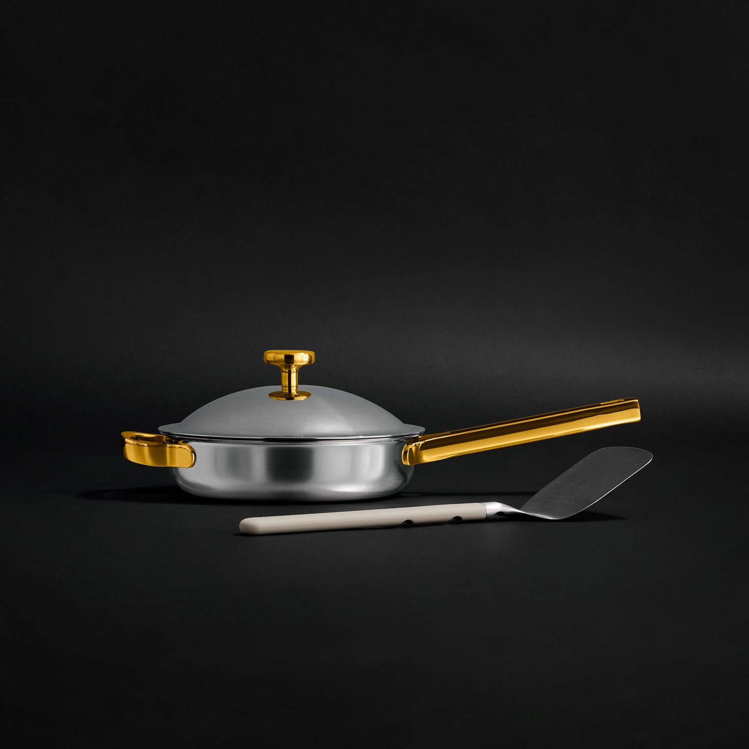 The Titanium Mini Always Pan Pro excels at searing, flipping, deglazing, deep frying, and so much more. Think: pan-fried potatoes, a perfectly seared steak, crispy fish, morning omelettes, creamy pasta dishes, and so much more.